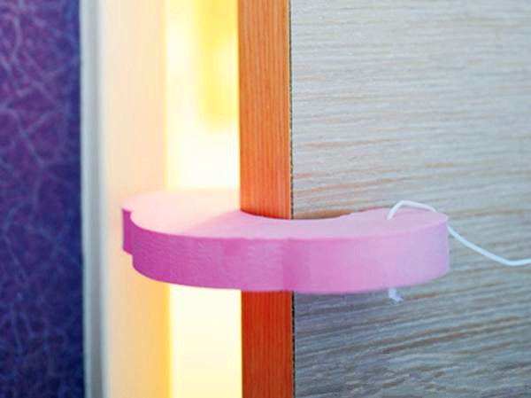 小孩經(jīng)常出現(xiàn)被門夾到的意外,因此門板上裝了防夾裝置,透過海綿緩沖,門不會一下就大力關上。
