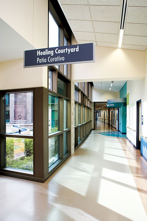 奧斯汀市因致力于推進(jìn)綠色建筑的實(shí)踐活動(dòng)而聞名于世,這家融合了德州中部社區(qū)活動(dòng)文化的醫(yī)院作為700英畝新城發(fā)展項(xiàng)目的一部分,位于奧斯汀市前機(jī)場(chǎng) 所在地,占地473,000平房英尺,擁有169個(gè)床位,整體設(shè)計(jì)具有獨(dú)特的視覺(jué)美感,并在很大程度上降低了建筑對(duì)周?chē)h(huán)境的消極影響。該醫(yī)學(xué)中心包括一 個(gè)天然氣發(fā)電廠,一個(gè)自然光照空氣新鮮的庭院,天然景觀和各種環(huán)境友好型裝飾物,所有這些都為德州中部地區(qū)營(yíng)造了一個(gè)優(yōu)秀的康復(fù)治療中心。中心總裁兼首席 執(zhí)行官Robert I. Bonar在接受采訪時(shí)表示,中心一貫放眼于創(chuàng)建一座世界級(jí)的醫(yī)療機(jī)構(gòu),成為第一家得到LEED認(rèn)證的醫(yī)院正是其中的一部分。取得LEED認(rèn)證的動(dòng)力并不 單單是環(huán)保,因?yàn)橐患揖G色醫(yī)院對(duì)于病患的康復(fù)更具有深遠(yuǎn)的影響。