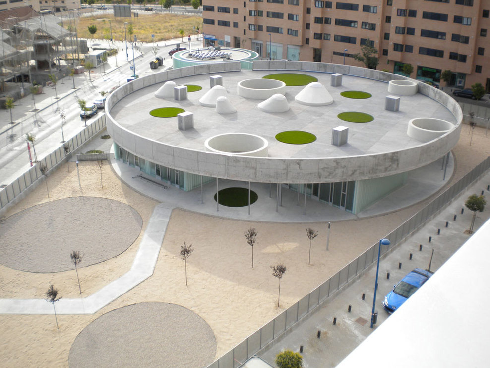 建筑以一個(gè)圓形的大屋蓋將幾座不同功能的空間涵蓋在一起,不同建筑之間形成課間活動(dòng)的場(chǎng)所。屋頂上則成為活動(dòng)操場(chǎng),操場(chǎng)上不同的凸起作為為下面采光的天窗。空間的趣味成為開(kāi)拓孩子們想象力的重要手段之一。