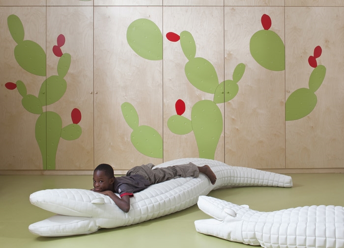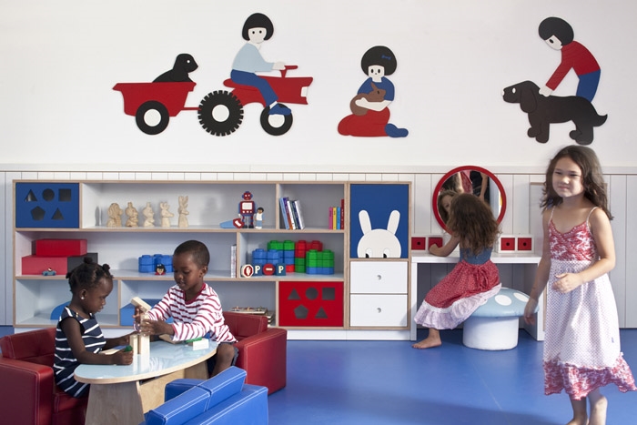 拉馬特甘幼兒園位于以色列占地為一百平方米,在幼兒園周圍是廣闊中滿青菜的菜地,幼兒園設(shè)計有兩個教室,分為一歲半和兩歲半的小班和兩歲半到三歲半的大班,幼兒園的設(shè)計非常的簡潔,精心去選擇顏色和木質(zhì)的家具成功搭配結(jié)合在一起,還有很多柔軟的手工設(shè)計添加在其中,可以激勵孩子們揮發(fā)自己的想象力,種種有針對性的舉措是的幼兒園形成親密獨(dú)特的氛圍。