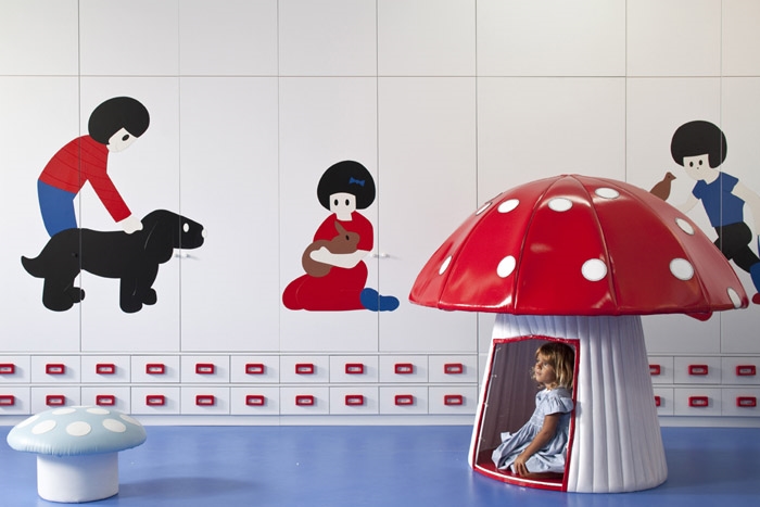 在堅持富有想象力的創(chuàng)意設(shè)計時,同時全面考慮使用對象,材料方面使用經(jīng)濟(jì)型的PVC地板以及人造革材料,家具方面則是高度符合兒童人體工程學(xué),可以方便去拿玩具,而且還具體的設(shè)了有病床、蘑菇、房子、廚房、烤箱等等大玩具,可以讓孩子們在里面過足扮家家的癮,每一個細(xì)節(jié)都做了考慮,蘑菇、木房則可以讓孩子們藏在里面能讓孩子們能得到更多的體驗,發(fā)揮想象力。
