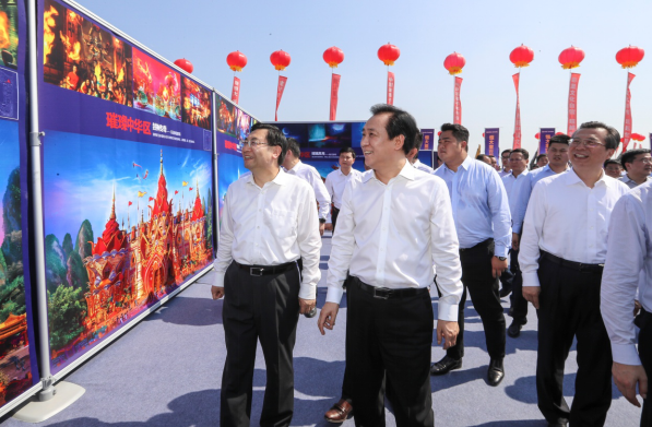 5月16日,位于陜西西咸新區(qū)秦漢新城的西安恒大童世界正式開工,陜西省委書記、省人大主任胡和平,省委常委、常務副省長梁桂,省委常委、西安市委書記王永康,西安市政協(xié)主席、西咸新區(qū)黨工委書記岳華峰,省委副秘書長趙曉明,省政府副秘書長夏曉中,西咸新區(qū)管委會主任康軍,西咸新區(qū)秦漢新城管委會主任楊占文等領導;恒大集團董事局主席許家印,恒大旅游集團董事長肖恩,恒大健康集團董事長時守明,恒大集團副總裁談朝暉、劉永灼、姚東,恒大中原公司董事長賈飛,西安童世界董事長梁謙等恒大高管悉數(shù)出席開工儀式。